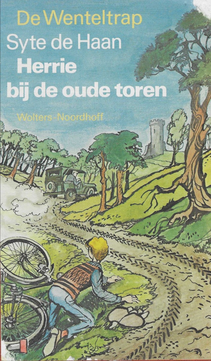 De Wenteltrap: Herrie bij de oude toren (1983), 1e druk, geïllustreerd door Les Spreekmeester.